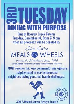 Come join us at Mother's Tavern in San Luis Obispo during the month of August. Five Cities Meals on Wheels will be showcased throughout the restaurant for the entire month! All proceeds from the sales at Table 48 will be donated to Five Cities Meals on Wheels. Reserve Table 48 anytime during lunch, or reserve Table 48 for dinner at their 6:00 PM or 7:30 PM dinner seating.